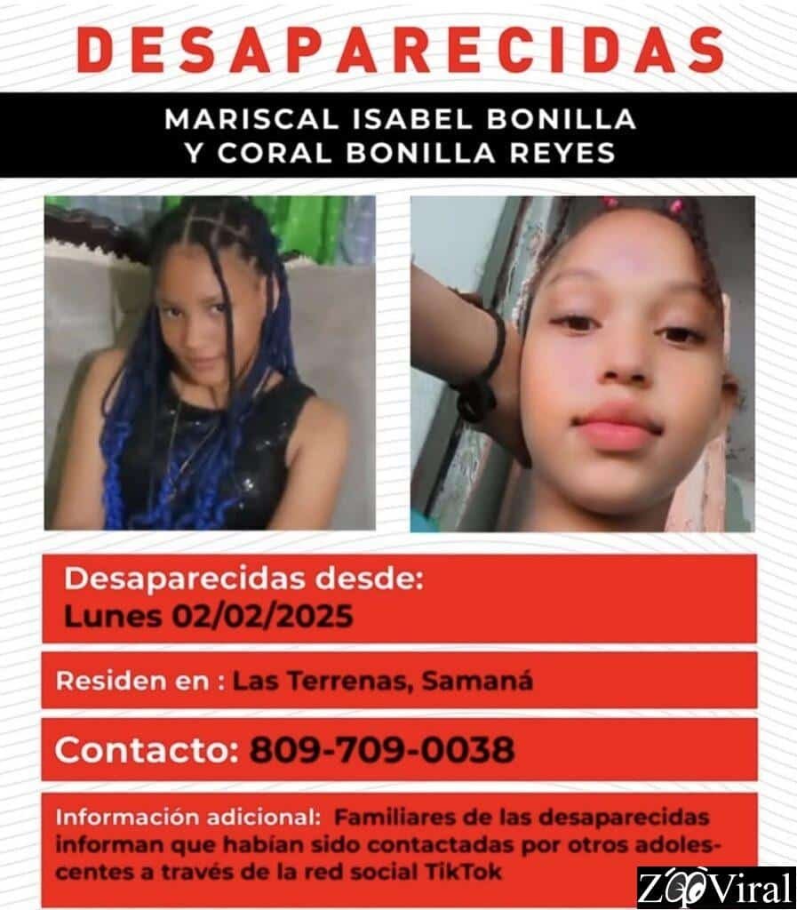 Se trata de Mariscal Isabel Bonilla (11 años) y Coral Bonilla Reyes (12 años), quienes fueron vistas por última vez este lunes. Según versiones de sus parientes, las menores habrían sido contactadas por otros adolescentes a través de TikTok, antes de desaparecer, lo que ha encendido las alarmas sobre los peligros del uso de redes sociales en menores de edad.